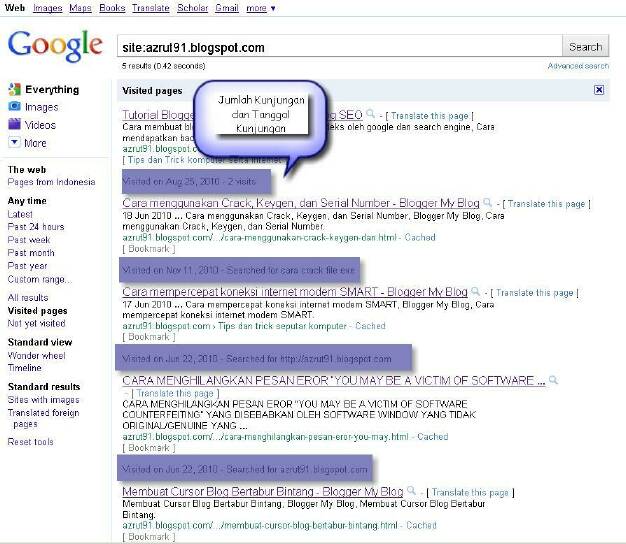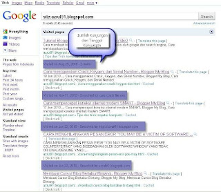 Jika sobat melakukan pencarian seperti biasa tentu yang tampil hanyalah hasil SERP tanpa ada Jumlah kunjungan dan tanggal kunjungan ke blog kita melalui Search Engine