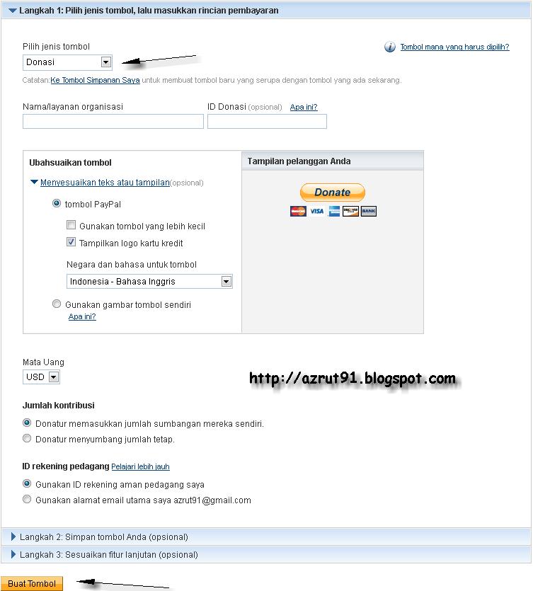 kalau sudah mari kita kembali lagi ke topik cara pembuatan pemasangan widget donasi paypal diblog, caranya cukup mudah kok sobat, silahkan ikuti langkah-langkah dibawah ini untuk membuat widget donasi paypal diblog