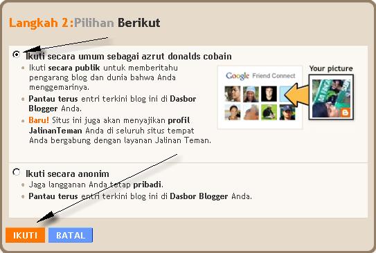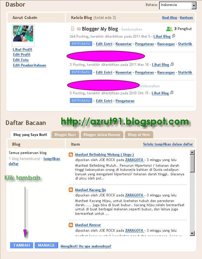 5. Pada Panah Nomor 1, Masukan URL blog yang akan diikuti, misalnya http://azrut91.blogspot.com
